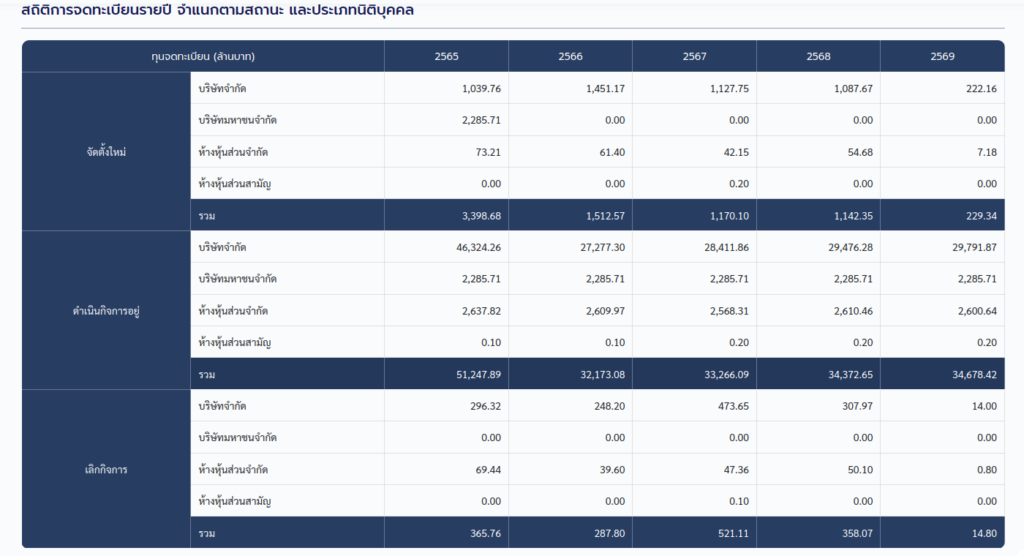 These entities had combined registered capital of about THB34.6 billion, or just over US$1 billion by current exchange rates.